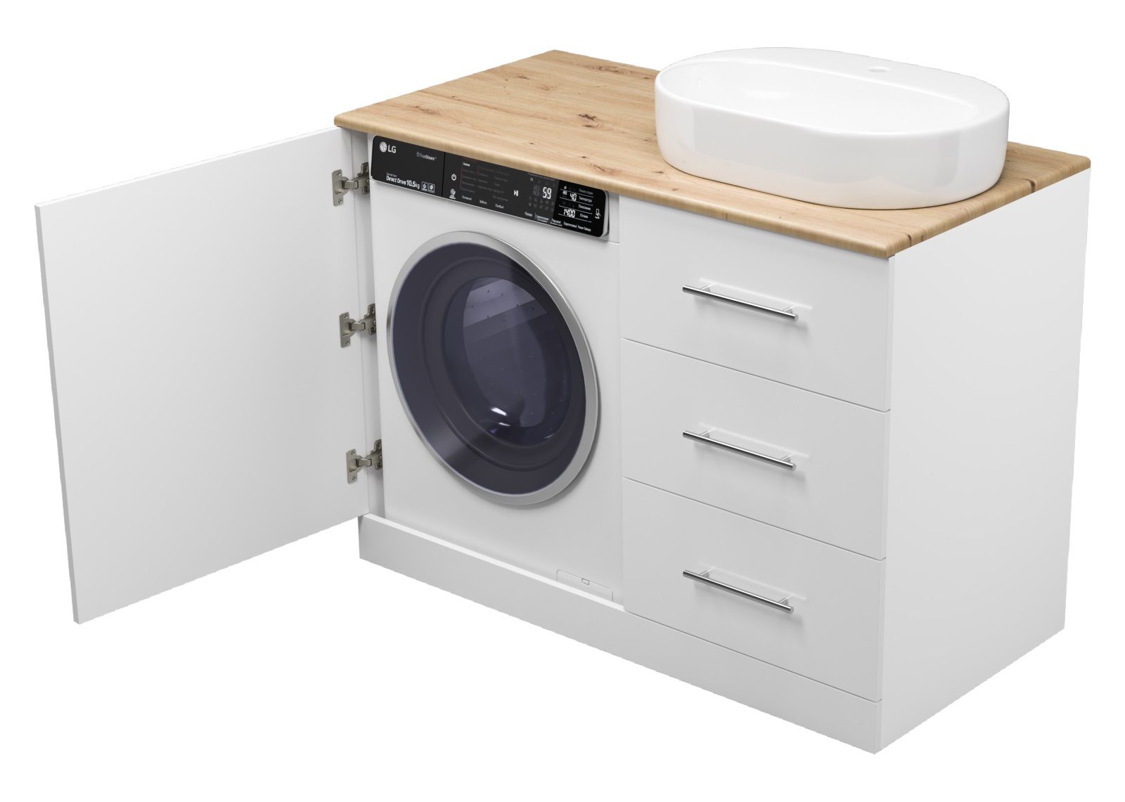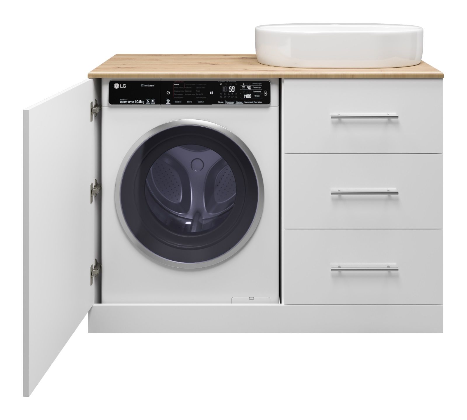 Напольная тумба под раковину Misty Респект под стиральную машину 120см правая белый/дуб Артизан