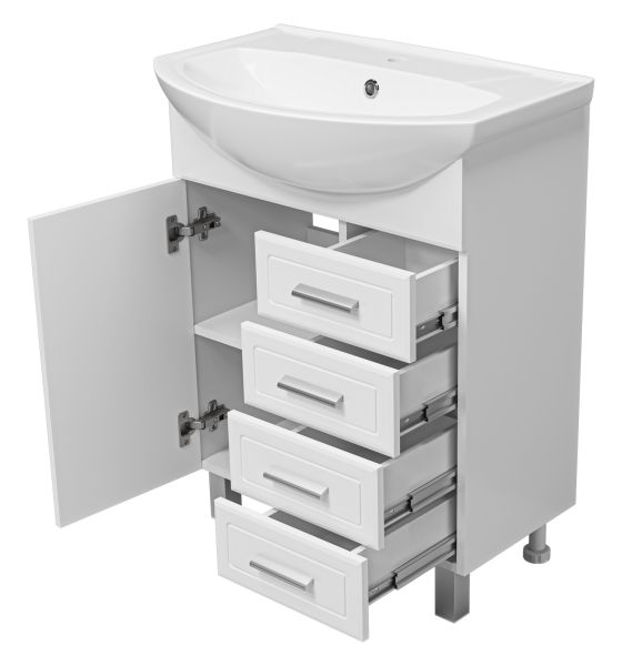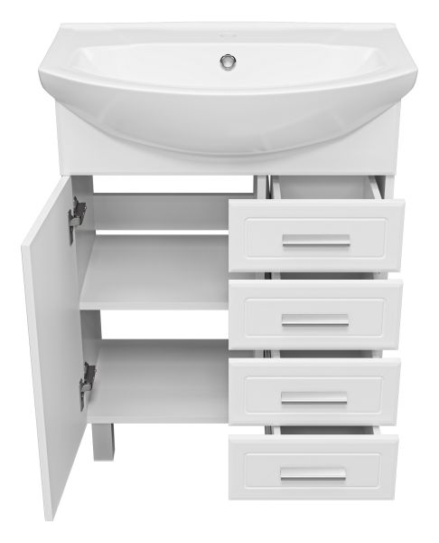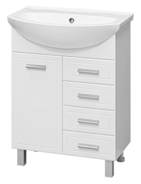 Напольная тумба под раковину Misty Стелла 65см с четырьмя ящиками белый