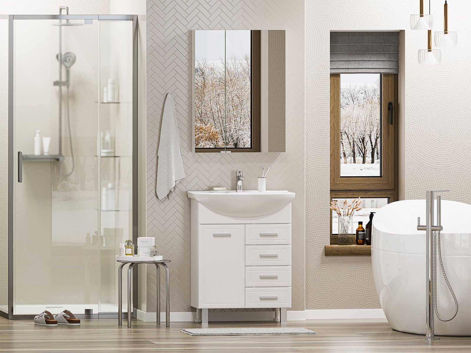 Напольная тумба под раковину Misty Стелла 65см с четырьмя ящиками и бельевой корзиной белый купить
