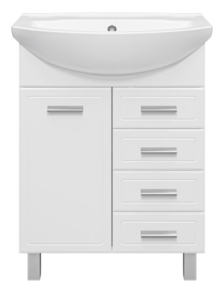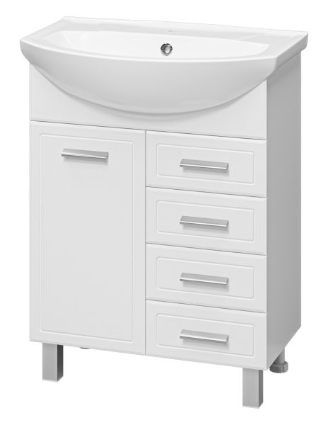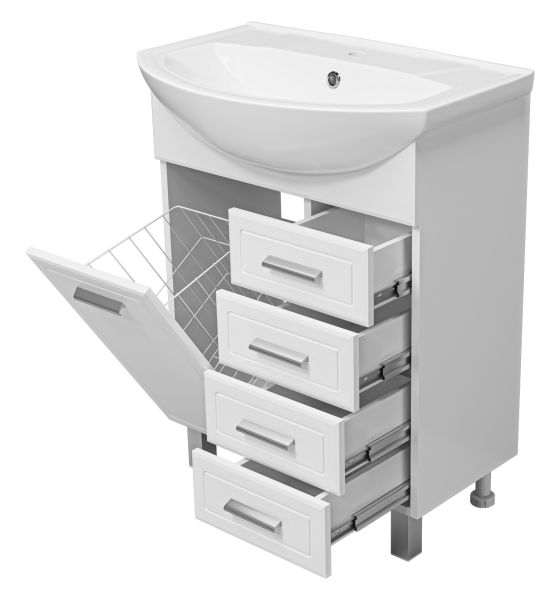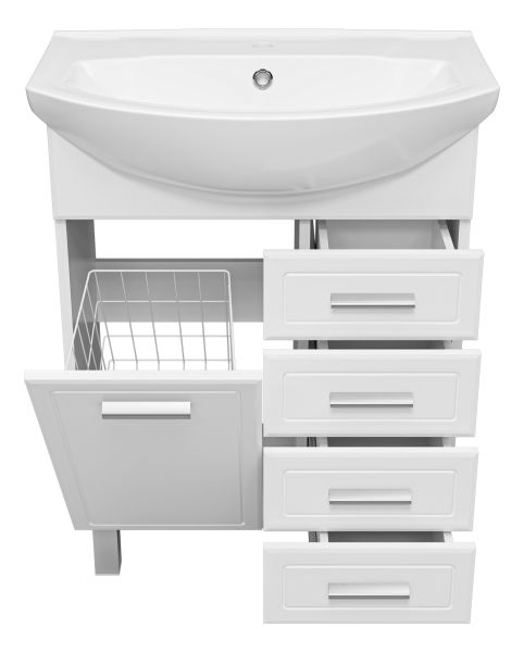 Напольная тумба под раковину Misty Стелла 65см с четырьмя ящиками и бельевой корзиной белый