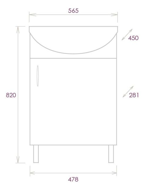 Размеры тумбы без учета раковины и ножек 48x28x68 cм.