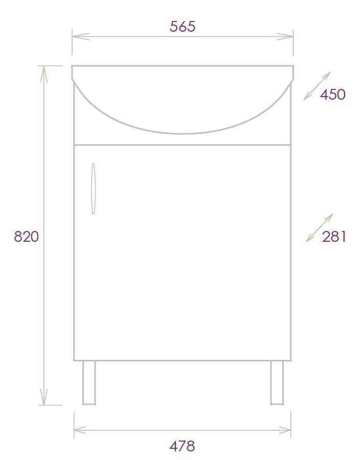 Размеры тумбы без учета раковины и ножек 48x28x68 cм.