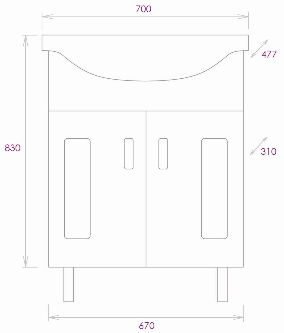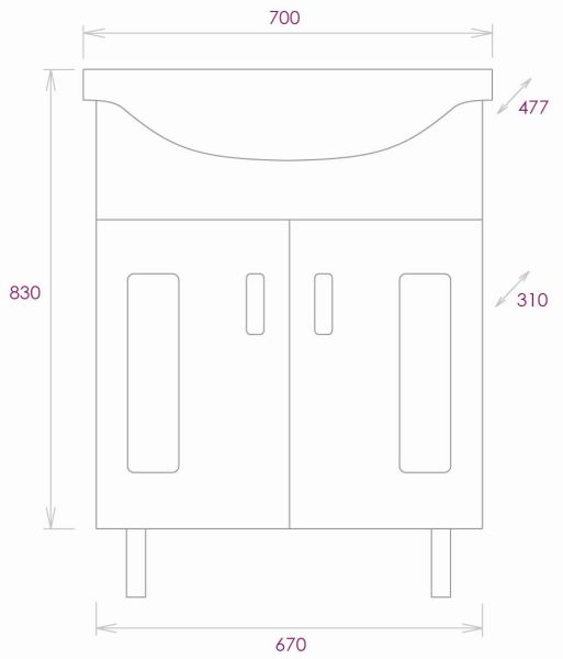Размеры тумбы без учета раковины и ножек: 67х31х68 см.