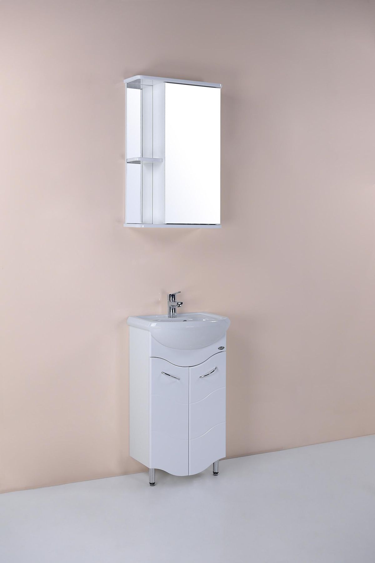 Элегантная напольная белая глянцевая тумба Onika Лайн 45 - выгодное решение для оптимизации ванной комнаты.