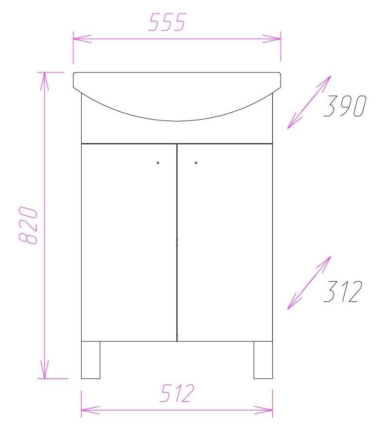 Размеры тумбы без учета раковины и ножек 51х31х68 см.
