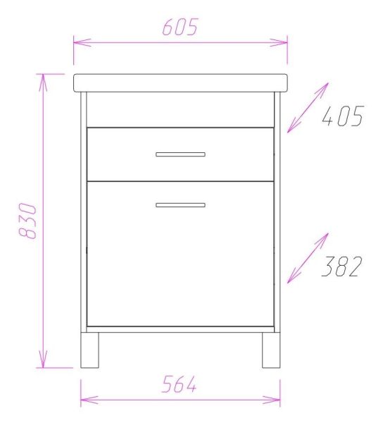 Размеры тумбы без учета раковины и ножек 56x38x68 см.