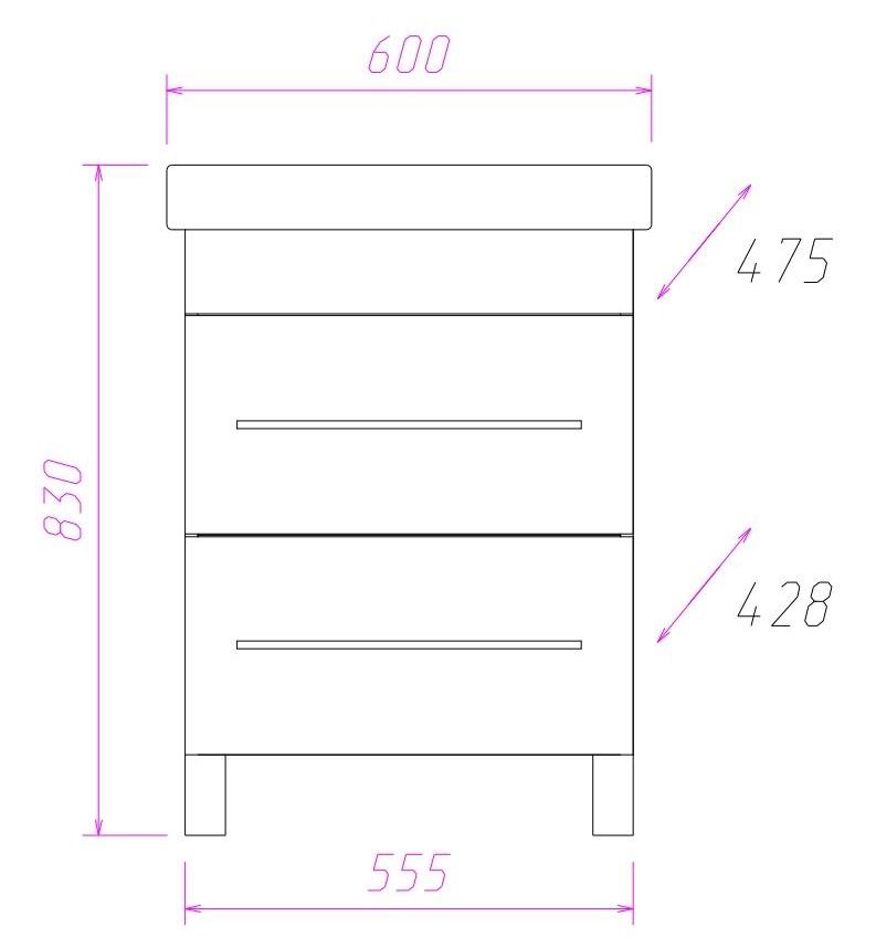 Размеры тумбы без учета раковины и ножек 55x43x65 cм.