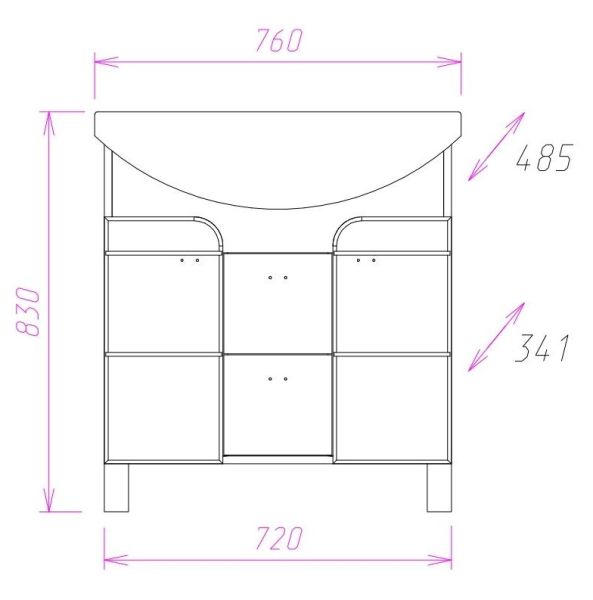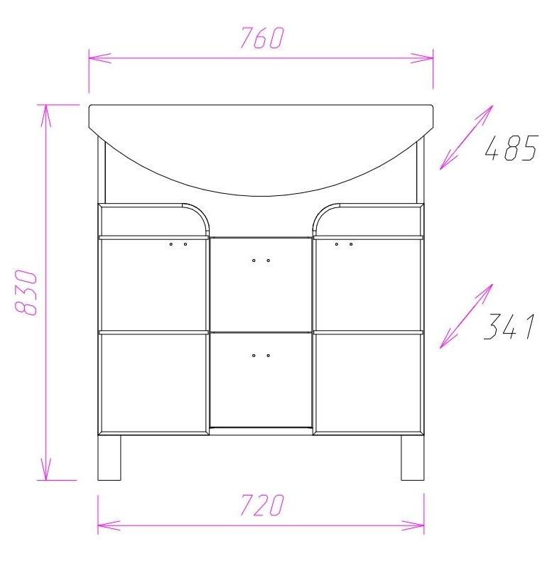Размеры тумбы без учета раковины и ножек 72x34x68 cм.