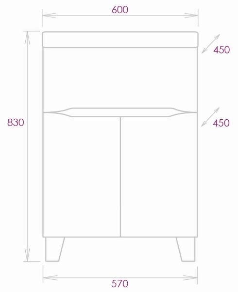 Размеры тумбы без учета раковины и ножек 57x45x68 cм.