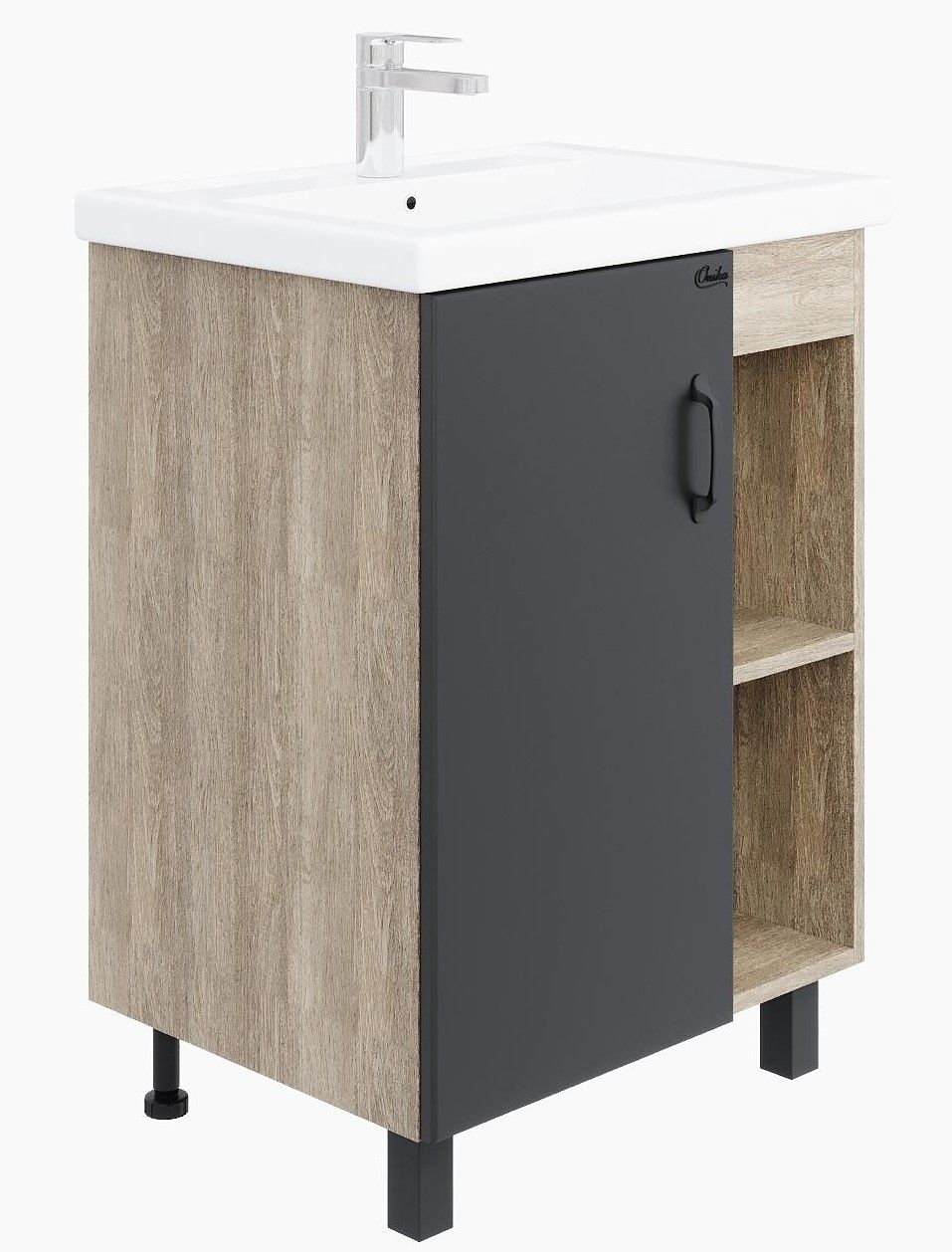 Напольная тумба под раковину Onika Тимбер 106116 60см серый матовый/дуб сонома купить
