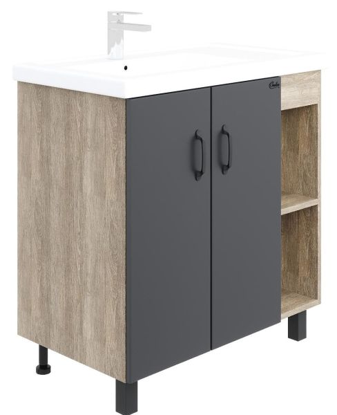 Напольная тумба под раковину Onika Тимбер 108046 правая 80см серый матовый/дуб сонома