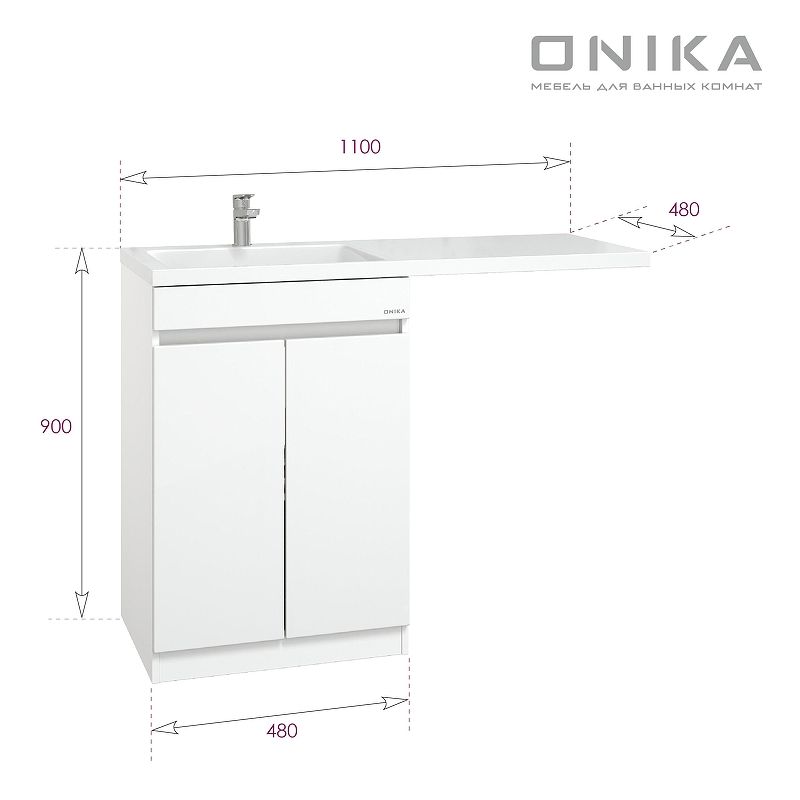 Напольная тумба Onika Милтон Нова 58 станет отличным решением для совмещения со стиральной машиной.