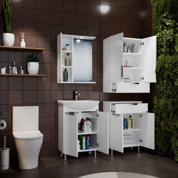Комплектация: ручка хром - 1 шт., ножка хром - 2 шт., ножка пластик 2 шт., петли с плавным закрыванием - 2 шт. Тумба под раковину Санта Родос 45 под умывальник Уют 45 — это воплощение современного и стильного дизайна, созданное специально для вашей ванной комнаты. Она оборудована дверцей, что обеспечивает лёгкий доступ к её содержимому. Фасад тумбы выполнен из МДФ с фрезеровкой и покрыт глянцевой ПВХ-пленкой, а боковины — из белого влагостойкого ЛДСП. Внутри расположена одна полочка, что позволяет организовать пространство с максимальной функциональностью. Коллекция Родос отличается элегантностью и доступной ценой, что делает эту мебель отличным выбором для создания уютной и функциональной ванной комнаты.
