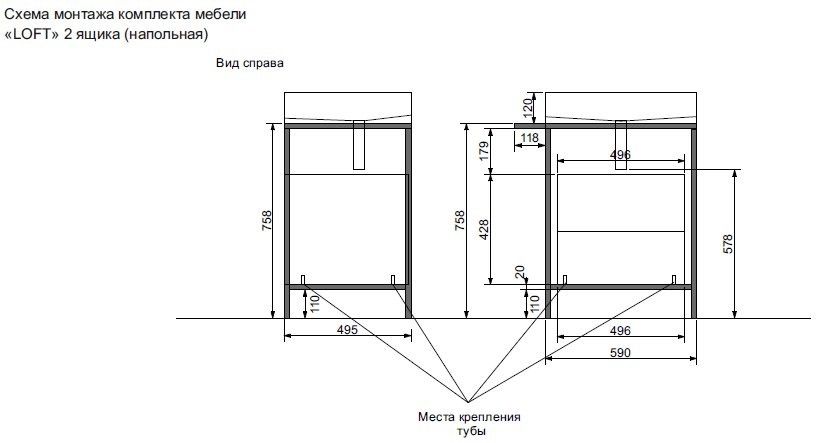 - Тумба напольная 2 ящика (ш/в/г): 708х758х495 мм