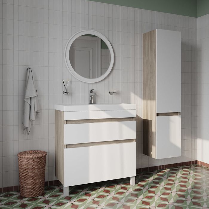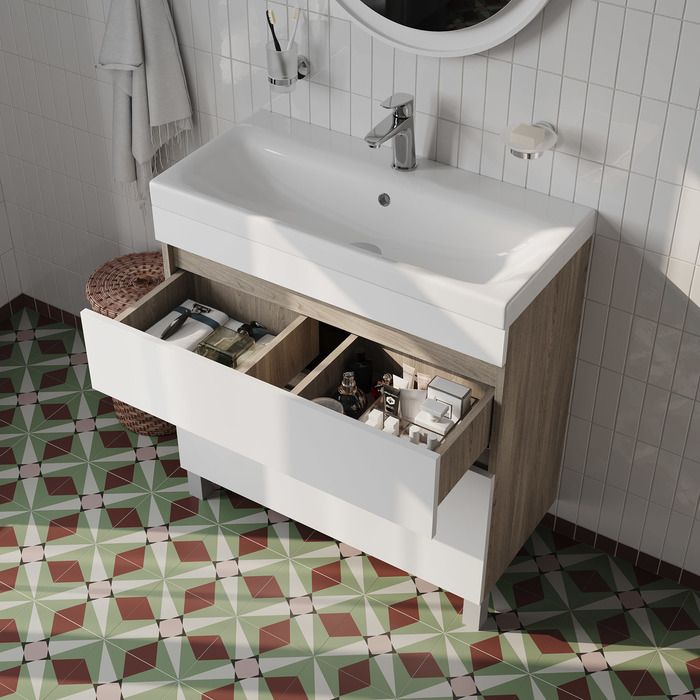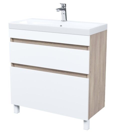 Напольная тумба с раковиной IDDIS Zodiac ZOD8ABFi95K с ящиками 80см белый/под дерево