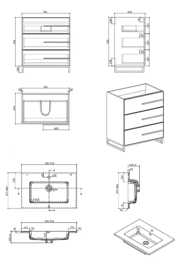 - Дизайн - минимализм, идеальное сочетание дизайна из трех! ящиков