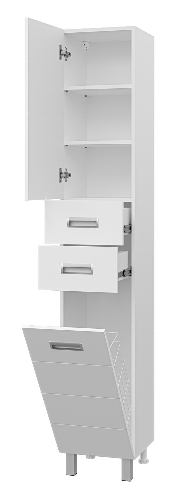 Напольный шкаф - пенал Misty Селена левый 35см с бельевой корзиной белый