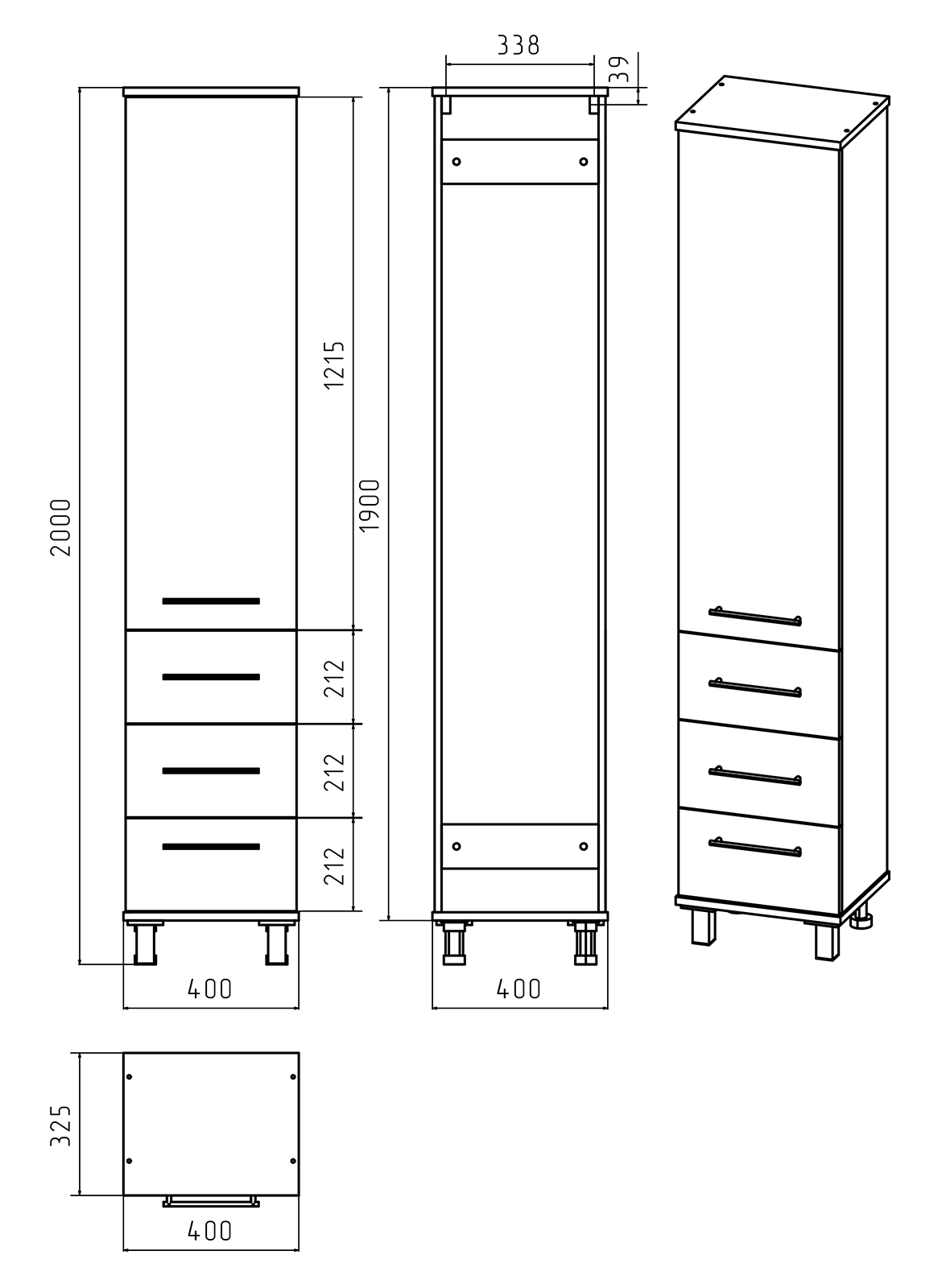 Напольный шкаф - пенал Misty Терра 40см с тремя ящиками левый белый купить