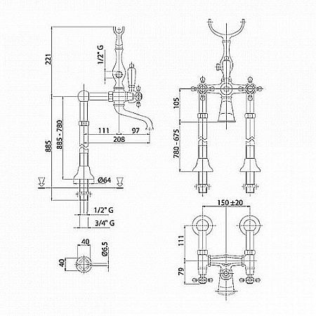 Напольный смеситель для ванны, бронза Cezares GOLF-VDP2-02-Bi купить