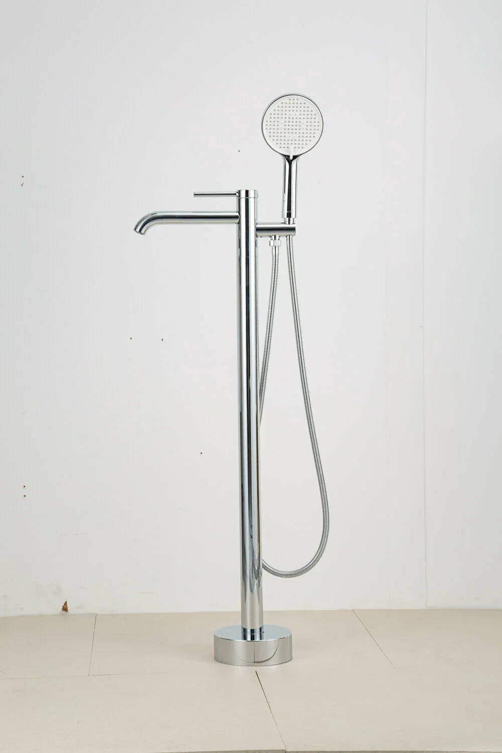 Напольный смеситель для ванной комнаты с душевой лейкой Gappo из латуни с гарантией 5 лет. Смеситель для ванны напольный с ручной лейкой латунный. Смеситель для ванной комнаты напольный, с напольный монтажом. Трубы к напольному типу смесителя подводятся из-под пола, так что перед его установкой нужно убедиться, что вы сможете позволить подпольную прокладку трубопроводов в своей ванной комнате. Материал корпуса - латунь.У данных смесителей переключение подачи воды на душевой шланг или излив происходит с помощью поворота рычага, который выносится на переднюю панель.