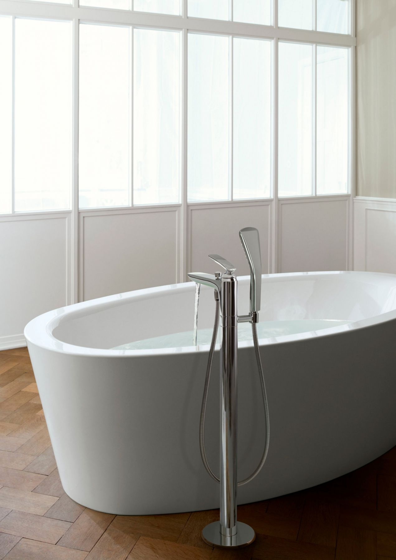 • вертикальный монтаж для отдельно стоящих ванн