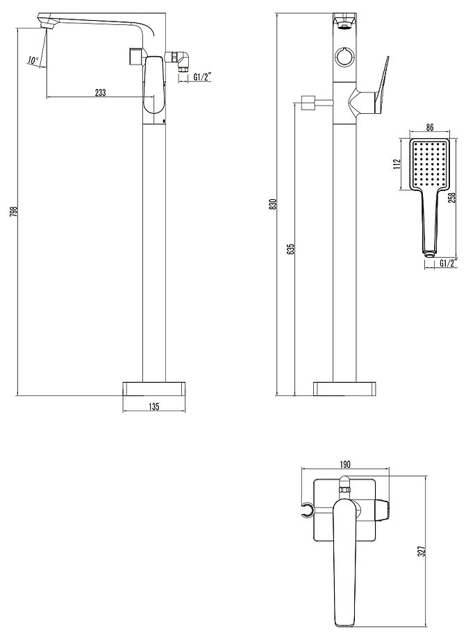 - Высота излива: 798 мм