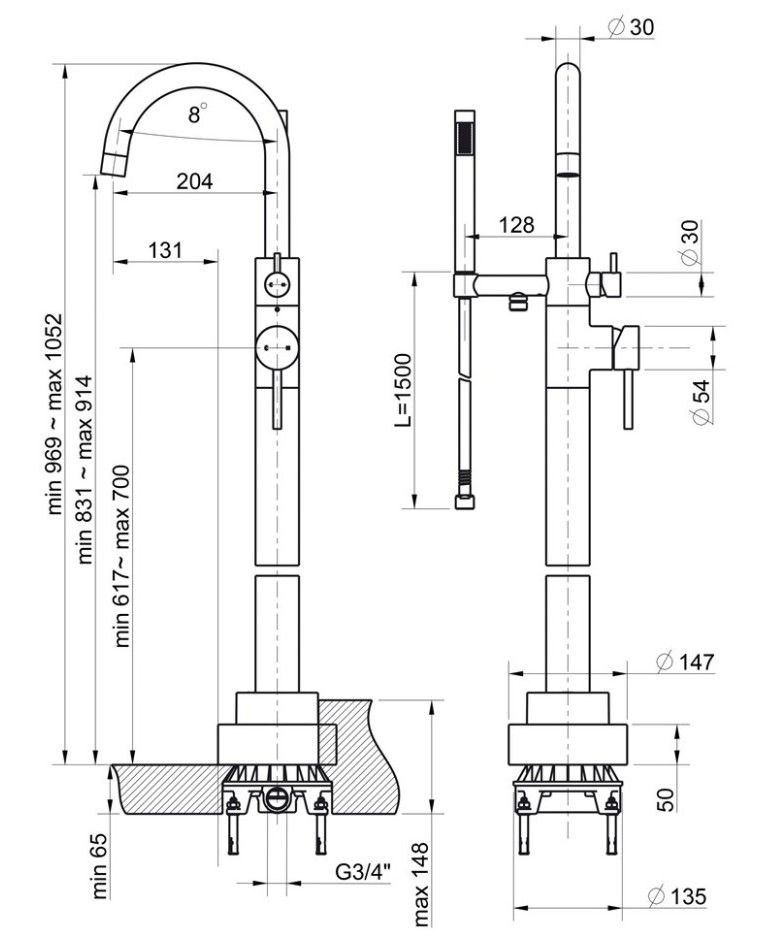 • Напольное расположение и высота смесителя позволяют установку в бассейн, сауну или станут новаторским решением для отдельно стоящей ванны.