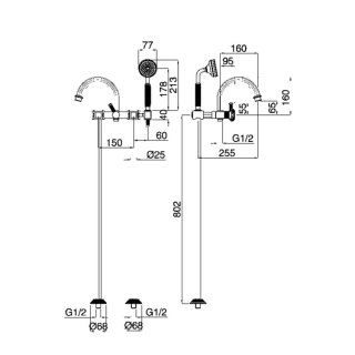 Напольный смеситель для ванны с ручным душем Cezares APHRODITE-VDP-03/24-S1