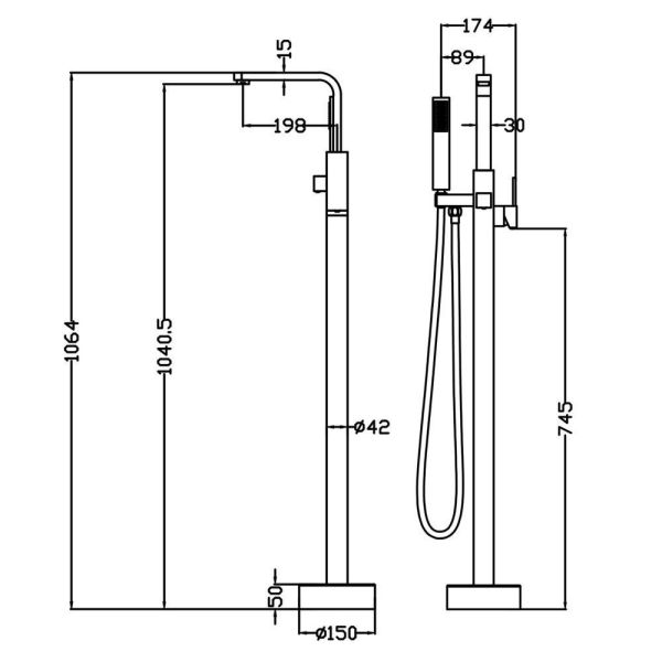 Смеситель для ванны напольный Материал: латунь Декоративная пластина: латунь Душевая лейк... Подробнее