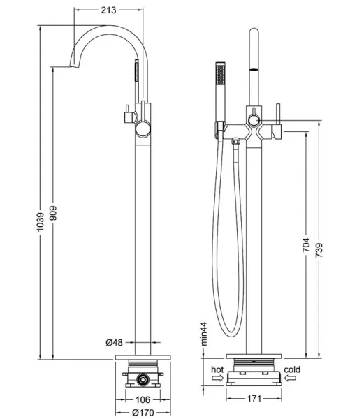 • Напольный смеситель для ванны с душевым гарнитуром