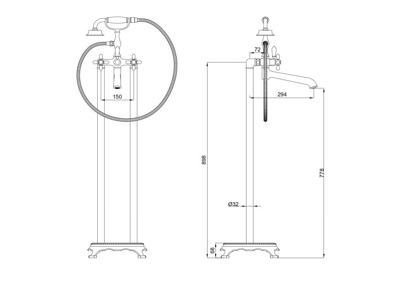 Смеситель для ванны напольного монтажа WONZON & WOGHAND RETRO, Брашированное золото (WW-8864... Подробнее