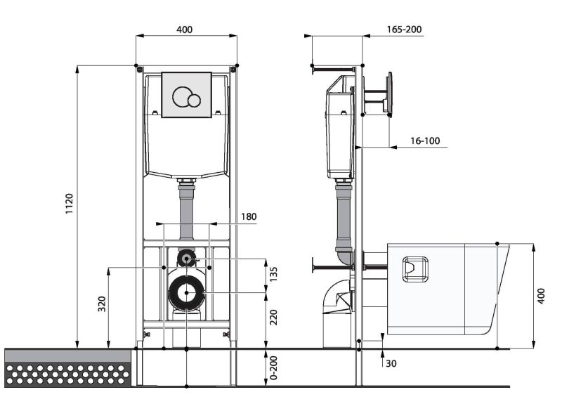 • Габариты инсталляции (ДШВ): 20x40x112 см.