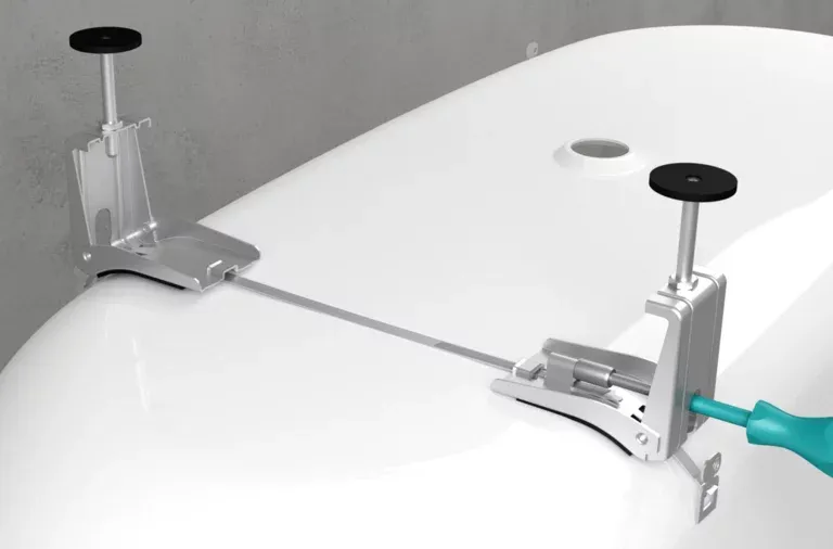Вспомогательное средство с индивидуальной регулировкой по высоте для легкого и надежного монтажа ванн.