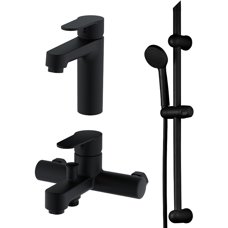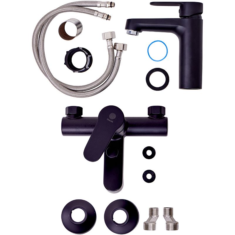 Комплект смесителей Orange OneLife P07-511b.Комплект смесителей изготовлен из запатентованного высокотехнологичного полимера, который выдерживает 510 000 циклов и 53 АТМ без замены изделия после теста на цикличность, а также исключает возможность обжечься при касании и не подвержен коррозии и окислению. Стойкий к отрицательным температурам.Характеристики:Цвет: черный матовый.