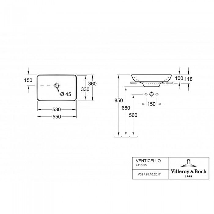 Раковина накладная Villeroy Boch Venticello 36 x 55.5 см 41135501 купить