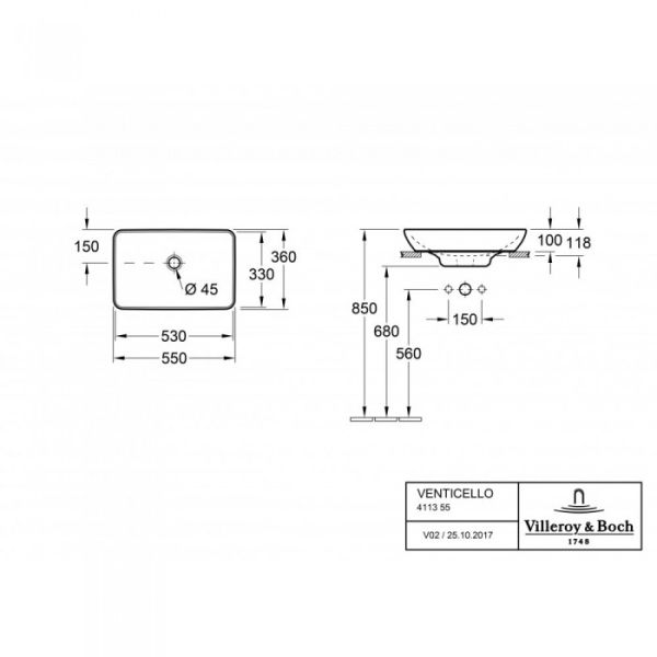 Раковина накладная Villeroy Boch Venticello 36 x 55.5 см 41135501