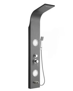• Комплектация: душевая панель, душевая лейка, смеситель, шланг для душа, верхний душ, крепеж, инструкция