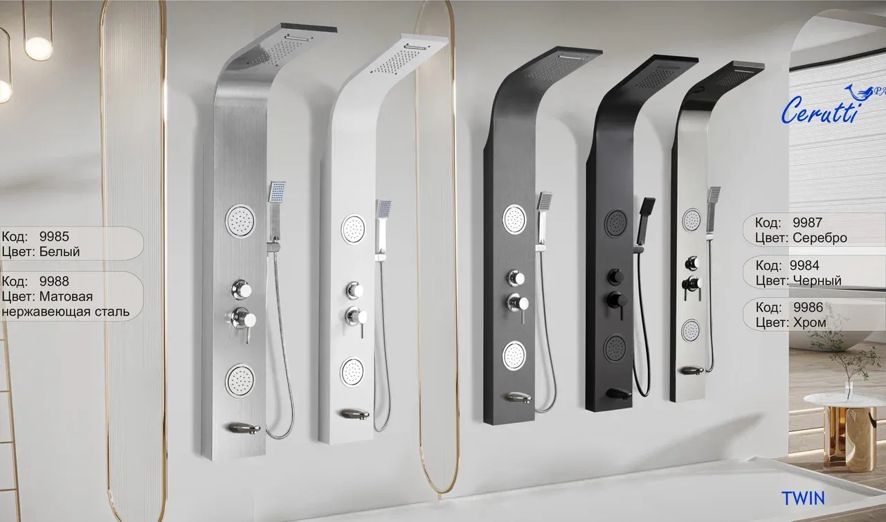 Комфорт ванной комнаты формируется современными элементами обустройства помещения. Поэтому для создания уютной атмосферы необходимо внимательно отнестись к выбору сантехнического оборудования. Сделать вашу ванную комнату не только эргономичной, но и функциональной, поможет душевая панель.Душевые панели становятся все более популярными, так как предлагают роскошные SPA процедуры в комфорте вашей собственной ванной комнаты. Эти изящные и стильные устройства обладают целым рядом функций, которые призваны улучшить ваши впечатления от принятия душа.Также душевые панели являются отличным решением для помещений любых размеров: они компактные, функциональные, удобные в управлении и эксплуатации. Душевые панели не требуют трудоёмкого ухода и являются отличной альтернативой классическим смесителям с ручной лейкой, душевым стойкам или кабины с гидромассажем.Трендовые душевые панели бренда Ceruttispa отличаются высоким качеством, современным дизайном, многофункциональностью, надежностью и долговечностью. Они будут прекрасно смотреться в любом интерьере, а качественный материал исполнения - нержавеющая сталь - прослужит долго, сохранив свои эстетические характеристики. Удобная и многофункциональная душевая панель TWIN S предназначена для установки внутри душевых уголков, ограждений, а также совместно с ванной.Конструкция панели включает в себя верхний и ручной душ, а также держатель для аксессуаров. Излив оснащен аэратором, который снижает расход воды легко очищается.Внимание! Производитель оставляет за собой право вносить изменения в конструкцию и комплектацию моделей без предварительного уведомления!Особенности: