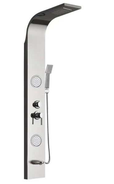 • Комплектация: душевая панель, душевая лейка, смеситель, шланг для душа, верхний душ, крепеж, инструкция