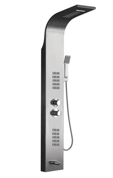 • Комплектация: душевая панель, душевая лейка, смеситель, шланг для душа, верхний душ, крепеж, инструкция