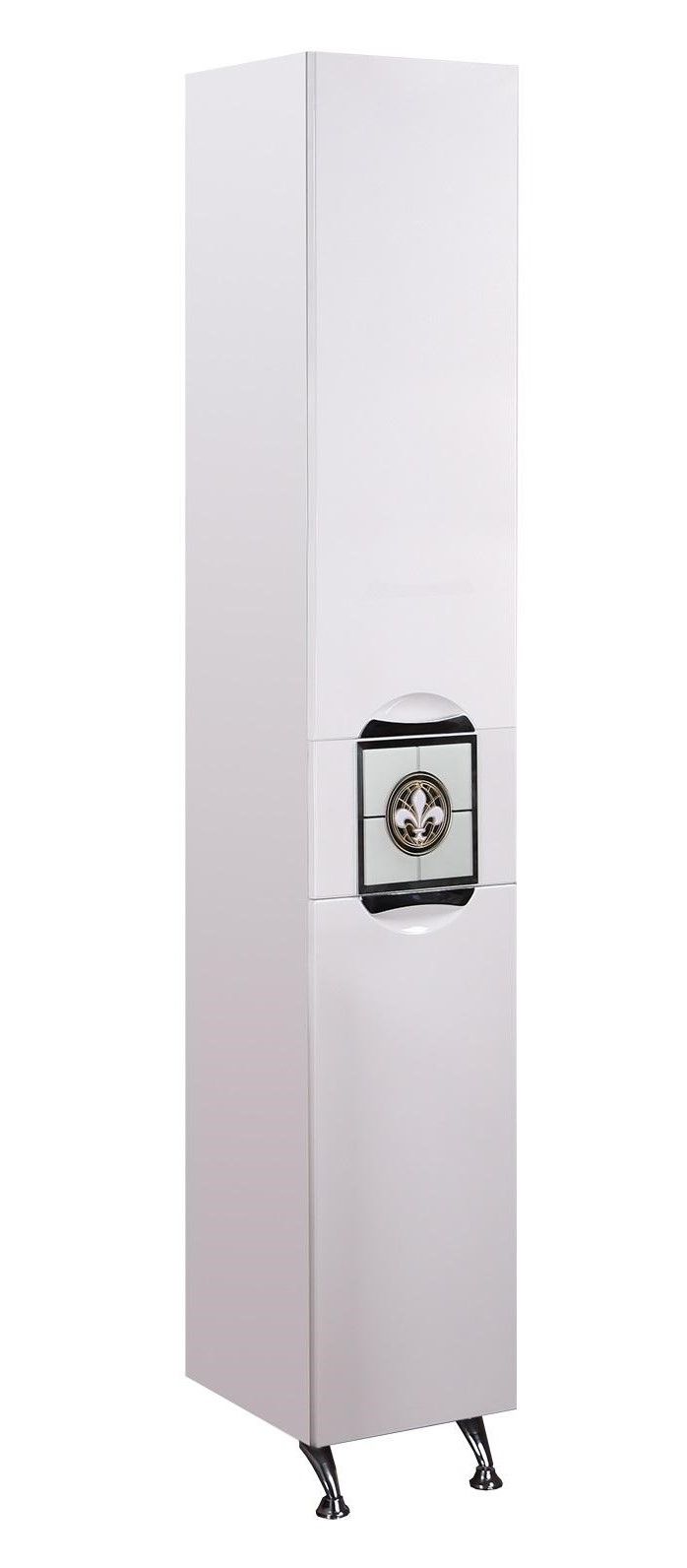 Белый глянцевый фасад пенала украшает декоративный витраж на зеркальном полотне - визитная карточка коллекции ФЛОРЕНА.