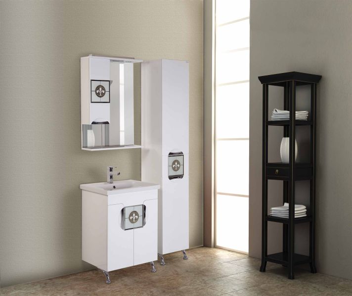 Внутреннее содержание не уступает внешней красоте: большое отделение сверху с двумя регулируемыми по высоте полочками, небольшой выдвижной ящик посередине и отделение со съемной корзиной для белья снизу шкафа обеспечит бережное хранение всех необходимых в ванной комнате вещей. Размер бельевой корзины: 250*265*640.