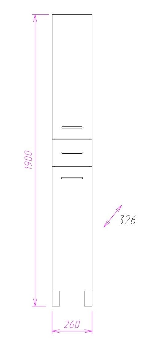 Размер пенала с ножками: 26х33х190 см.