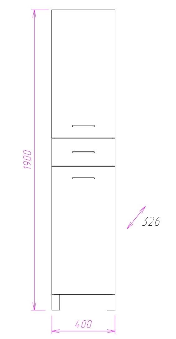 Размер пенала с ножками: 40х33х190 см.