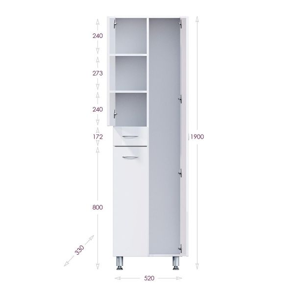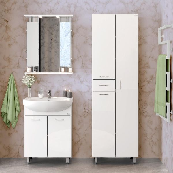Напольный пенал для ванной комнаты с корзиной для белья Onika МОДЕРН 52, благодаря простому минималистичному дизайну, белому глянцевому фасаду, подойдет под любой интерьер ванной комнаты.
