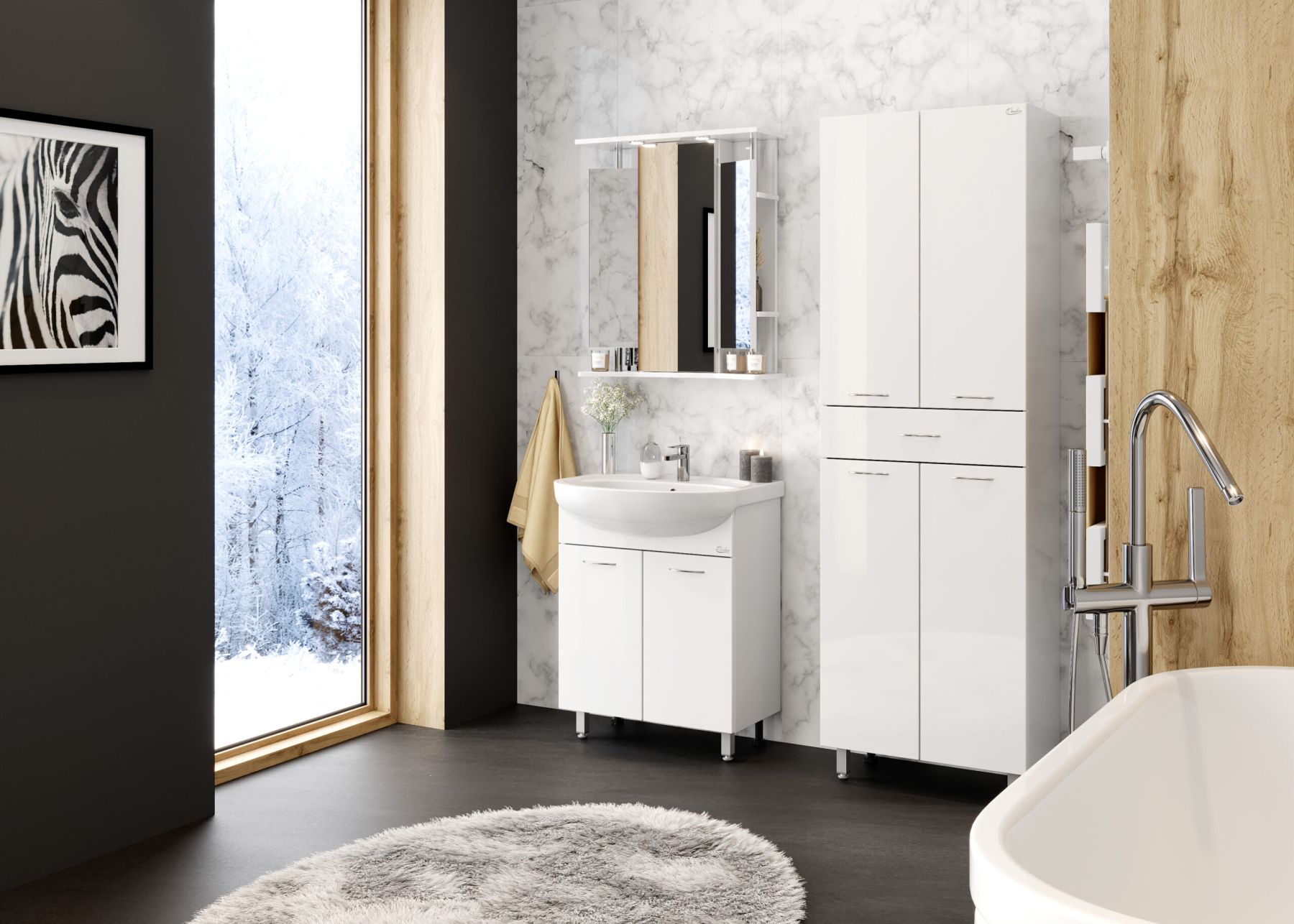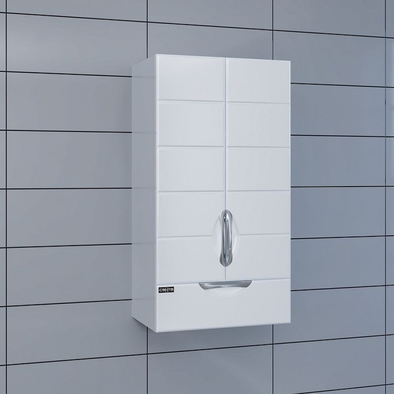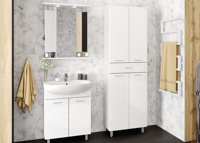 Напольный пенал для ванной комнаты Onika МОДЕРН 60, благодаря простому минималистичному дизайну и белому глянцевому фасаду, подойдет под любой интерьер ванной комнаты.