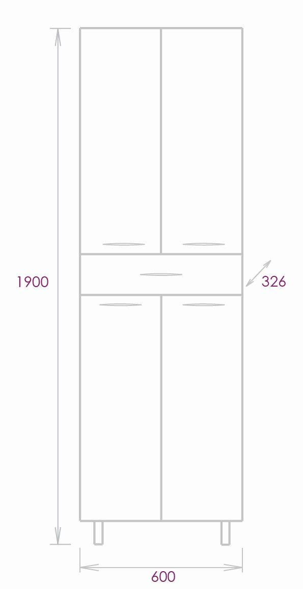 Конструкция пенала предусмотрела огромное пространство для хранения, в котором поместятся все необходимые вещи: большой выдвижной ящик посередине + 4 дверцы, скрывающие полки. Полки регулируются по высоте, дверцы оснащены механизмом плавного закрывания, а ящик - направляющими полного выдвижения.
