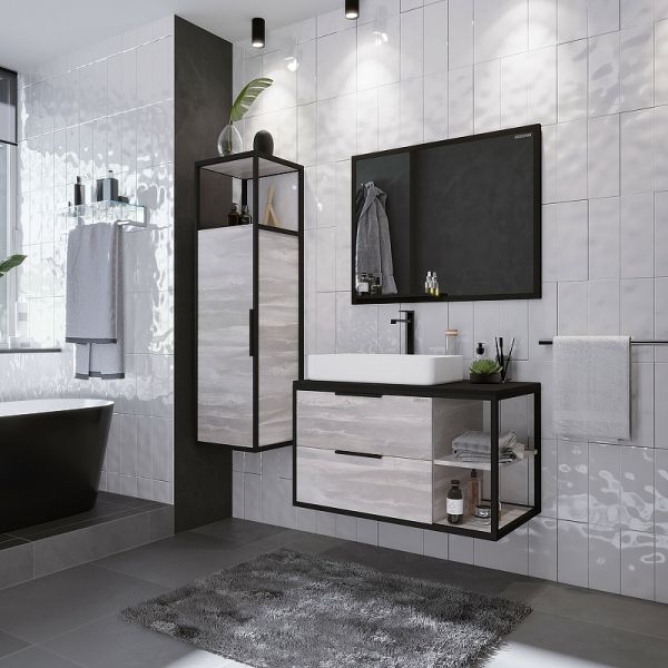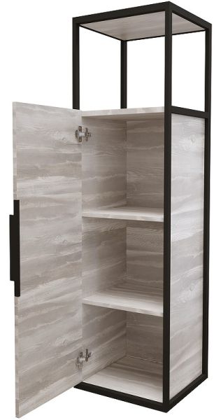 Подвесной пенал Лофт-40 образует дополнительное пространство для хранения средств гигиены и аксессуаров, обеспечивая максимальную эргономичность ванной комнаты. Внутреннее пространство пенала поделено полками на 3 секции. Интегрированный профиль из анодированного металла придадст интерьеру брутальности, присущий стилю лофт. Дверь снабжена мезанихмом плавного закрывания. Корпус и фасады пенала выполнены из влагостойкого ЛДСП, устойчивого к перепадам температур и высокой влажности, крепится к стене.