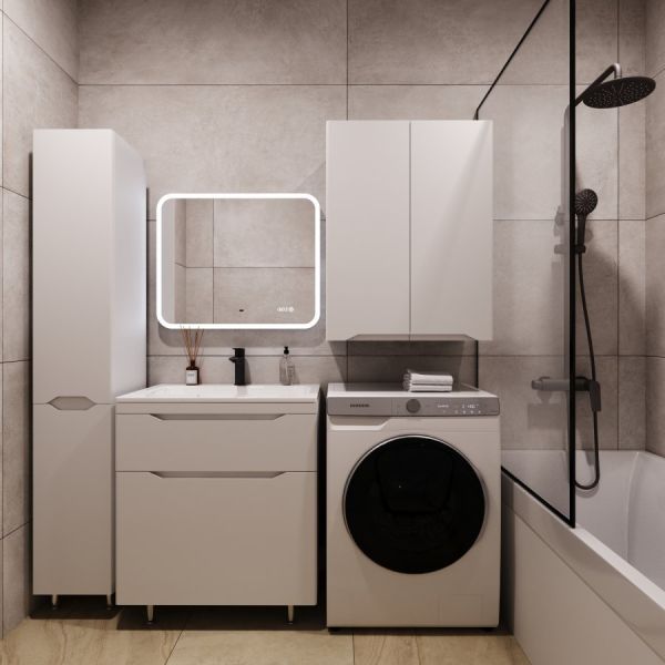 Пенал Style Line Марелла 30 Люкс Plus СС-00002421 с бельевой корзиной белый матовый