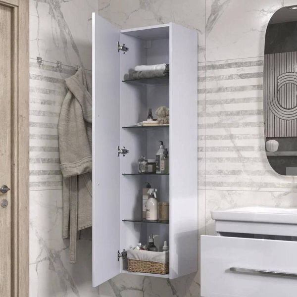 Пенал VIGO Land 40см, белый. 1 дверца, 4 стеклянные полки, ручка металлическая хромированная.